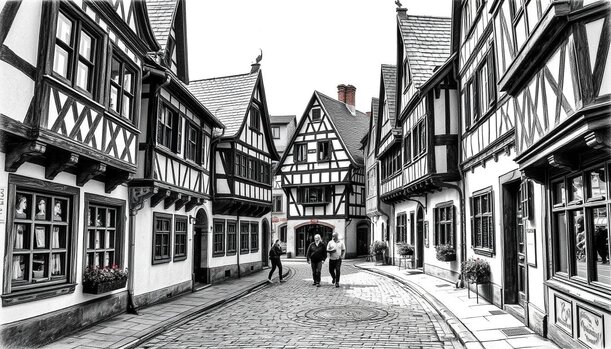 Moderner Cappuccino-Duft mischt sich mit dem Geruch von Eichenbalken. Hinter schiefen Fassaden verbergen sich Designstudios – ein Kontrast, der fasziniert.