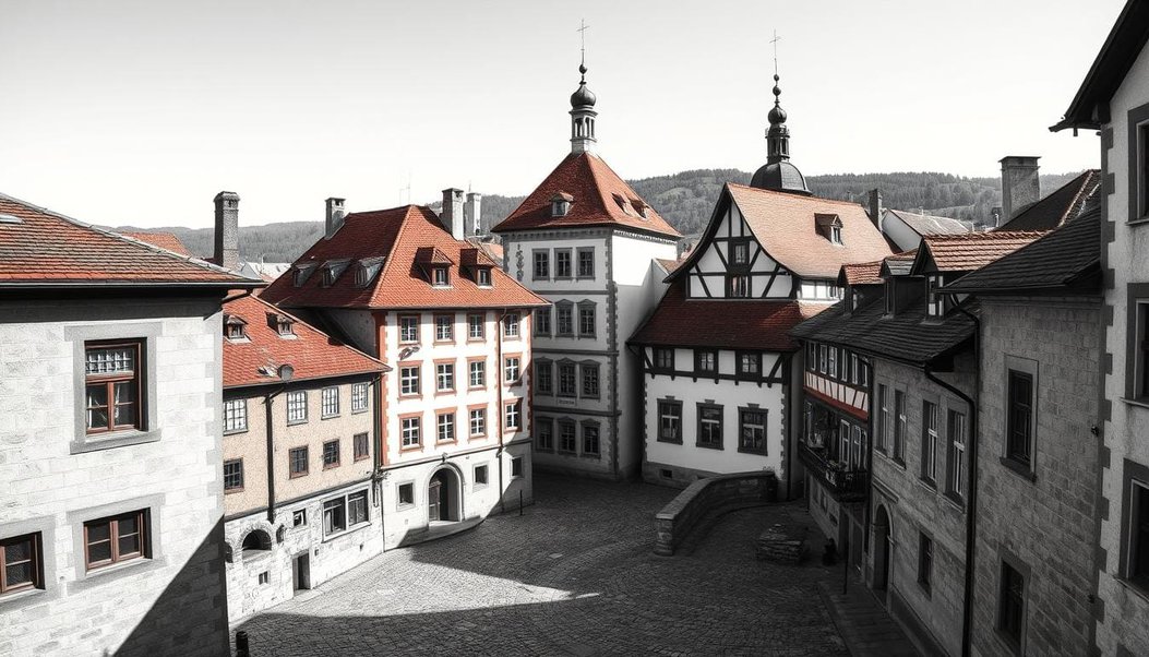 Gotische Kirchenfenster spiegeln sich in modernen Glasfassaden – ein architektonisches Paradox. Die Evangelische Elisabethkirche, 803 Meter entfernt, ist ein stummer Zeuge vergangener Zeiten. „7 Bauepochen im Laufe der Jahrhunderte vereint auf 2,15 km²“, erklärt ein lokaler Historiker.